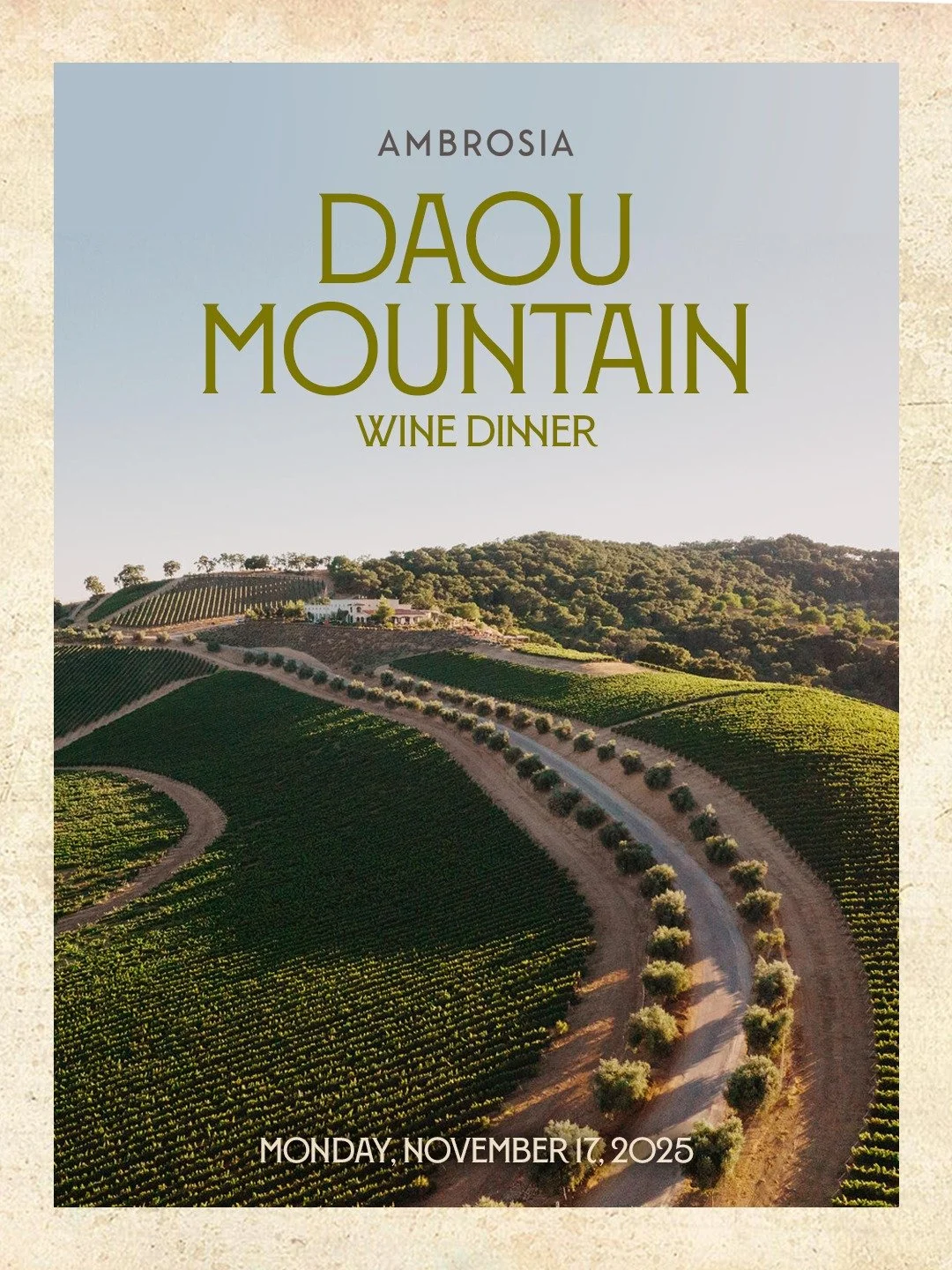Join us Monday, November 17, 2025, on a sensory journey from the limestone-rich slopes of Paso Robles to the heart of Oregon’s Willamette Valley. The Daou Mountain Wine Dinner pairs the artistry of winemaking with bold, seasonal flavors. Guided by Daou’s Paul Mendez III, guests will explore the nuance and depth of Daou’s signature wines from vibrant Rosé to the powerful Soul of the Lion in a menu that harmonizes terroir, technique, and storytelling.