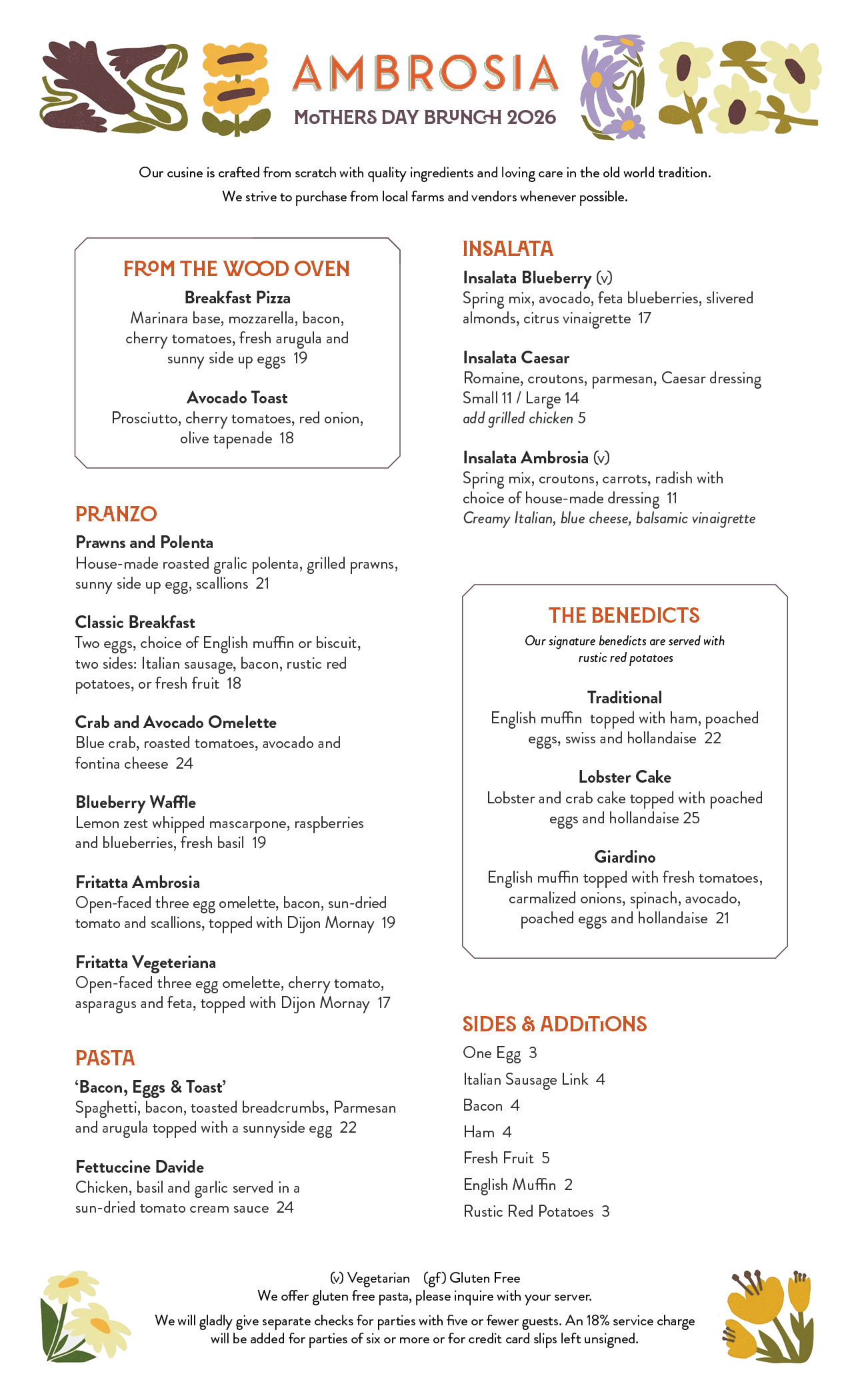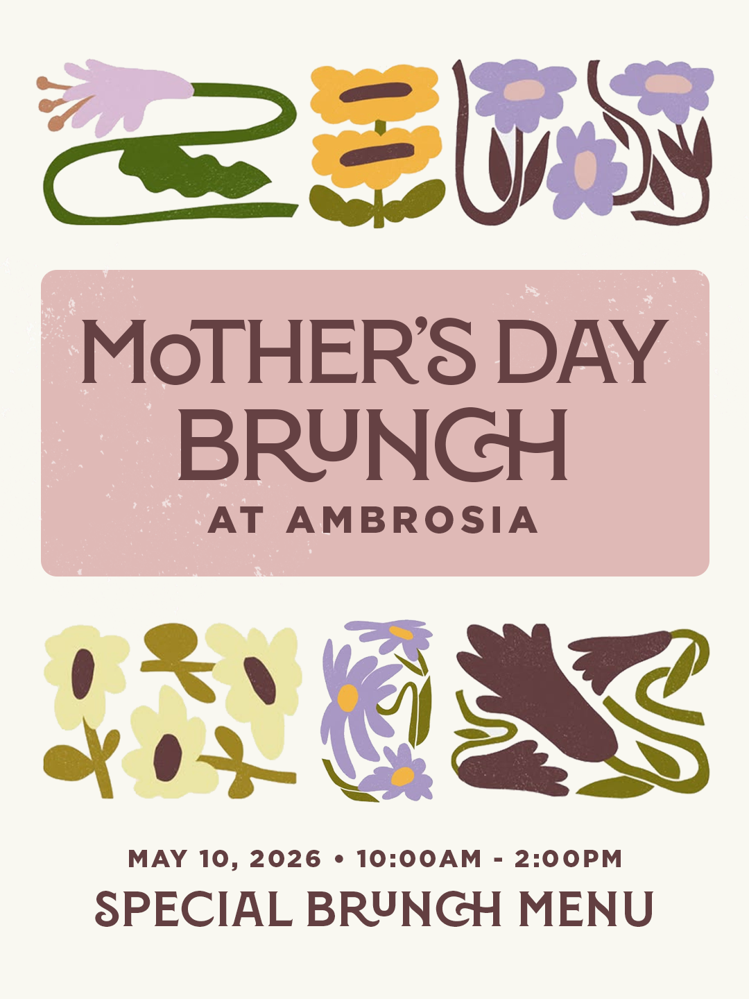 Mother’s Day at AmbrosiaSunday, May 10, 2026Brunch: 10:00am - 2:00pm Dinner: 4:30pm Make your mother's day reservation Make your mother's day reservation